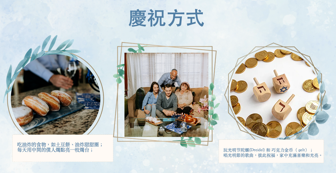 光明節Hanukkah,音譯為“哈努卡”,又稱“修殿節”或“獻殿節”。