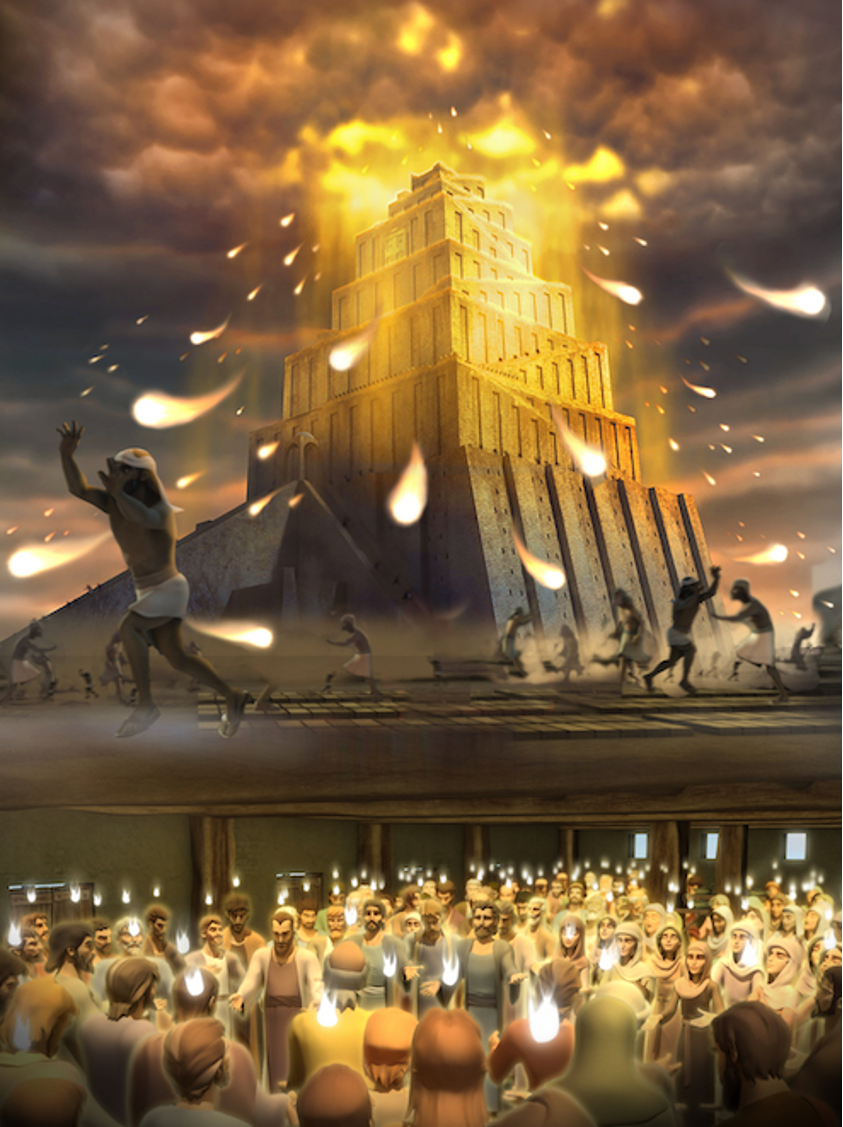在巴別塔,神通過變亂語言將地上的人們分開。